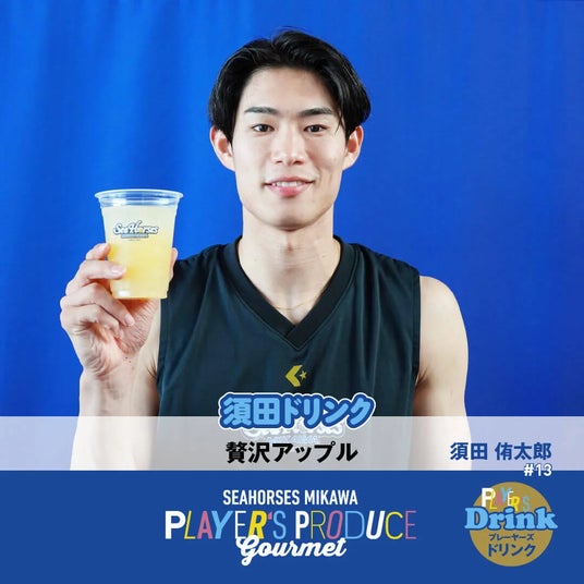 須田ドリンク (贅沢アップル)アップルジュースには目がない#13 須田侑太郎選手が飲み比べの中から厳選!りんごを丸ごと搾った100%のアップルジュース。
