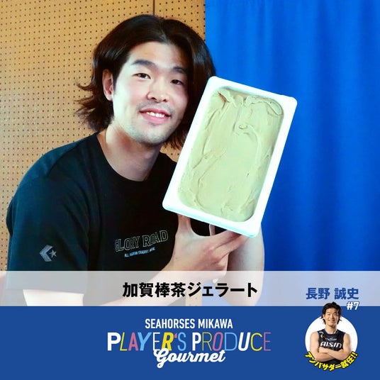 #7 長野誠史選手選手「加賀棒茶ジェラート」#7 長野誠史選手の地元・石川県で広く親しまれている「加賀棒茶(ほうじ茶)」を使用し甘過ぎない香り豊かな他にないオリジナルのジェラートです!