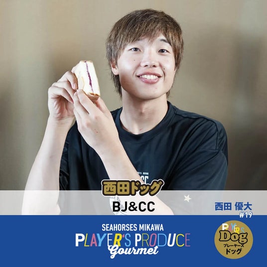 西田ドッグ(BJ&CC)この組合せは間違いないでしょう!!ブルーベーリーの果肉を感じる#19 西田優大選手イチ押しのブルーベリージャムと甘さ控えめのクリームチーズをサンドしました。