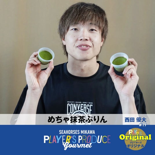 #19 西田優大選手プロデュースグルメ「めちゃ抹茶ぷりん」濃厚な抹茶ぷりんは少し固めに仕上げました!「めっちゃ抹茶~!これ商品名にしてね!」ってことでぜひ。