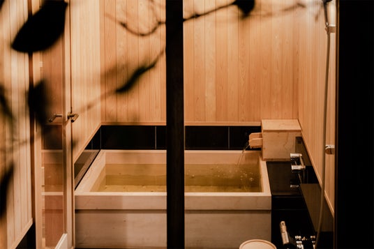 檜の香り漂うお風呂で、旅の疲れを癒やす贅沢なひととき。自然素材の温もりが心身を包み込みます。