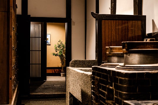 This historic building was once a silk thread shop and now has a mix of Japanese tradition-like a dirt floor