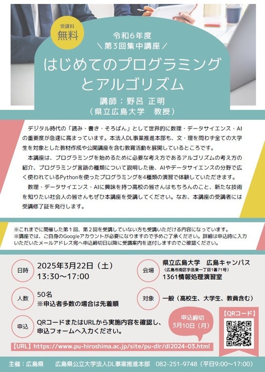 令和6年度 第3回集中講座「はじめてのプログラミングとアルゴリズム」 受講者募集