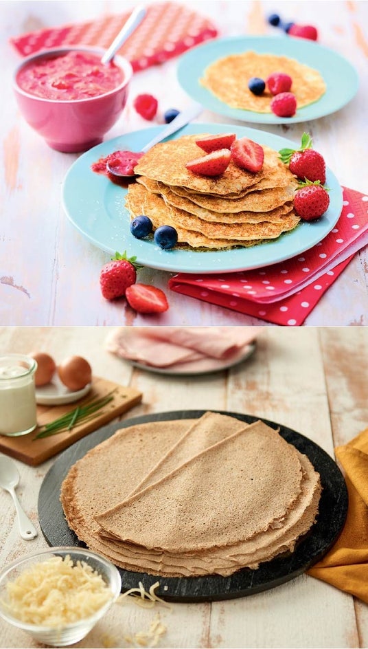 写真は、上「BIO ミニクレープ」下「そば粉のガレット」