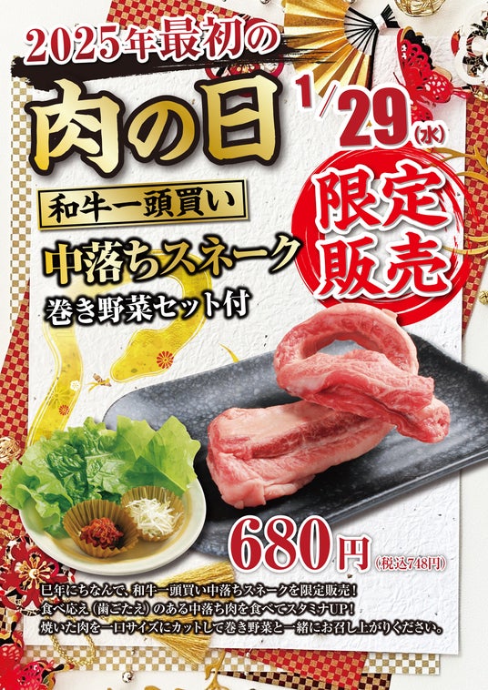 株式会社あみやき亭(本社:愛知県春日井市/代表取締役社長:宮崎 卓也)が中部地区81店舗を展開する国産牛焼肉「あみやき亭」全店にて、2025年1月29日に肉の日限定商品を販売します。