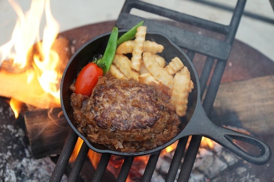 自分で仕上げるランチメニュー「焚き火ハンバーグランチ」