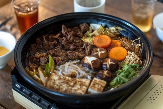 ご夕食は、屋内にてトリュフを使用したすき焼き鍋をご提供します。フレンチをお料理の軸とするINN THE PARKだからできた新名物です。