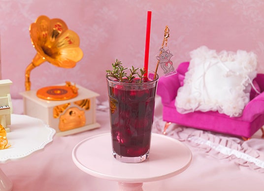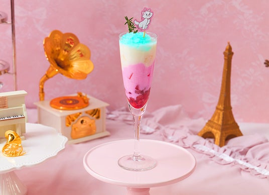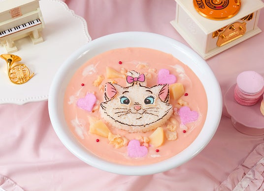 マリ-をイメージしたピンク色のシチューライスやマリーやトゥルーズ、ベルリオーズをイメージしたパングラタン、マリーたちのシーンをイメージしたロマンティックなリゾットプレート、マリーのサファイアのような瞳をイメージしたパフェ、キャラクターをイメージしたドリンクなど、ピンク色を活かした可愛いフォトジェニックなメニューをご用意いたしました。