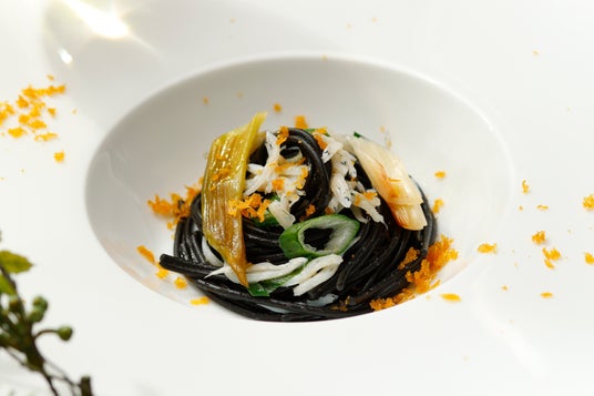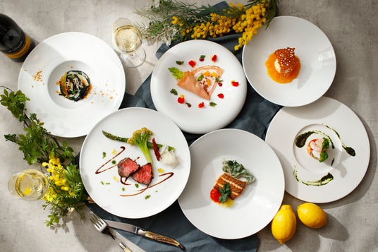 門出の春を祝う花束をイメージした可憐な雰囲気の前菜や、イカ墨を練りこんだ濃厚な旨味のパスタにしらすと九条葱を合わせカラスミで彩りを添えたスパゲッティ、三浦から直接仕入れる鮮魚を使用した魚料理は、すっきりとした味わいのレモン風味のソースでお召し上がりいただきます。肉料理には、旬のアスパラガスなど春野菜を添え華やかな印象の一皿に仕上げたイタリア伝統のタリアータを、食後には春を告げるミモザの花をイメージした美しいドルチェをご用意しました。豊かな色彩で春の訪れを華やかに表現したディナーコースが、大切な方とのお食事のひとときを華やかに彩ります。始まりの季節である"春"にぴったりのメニューを、どうぞごゆっくりとご堪能ください。