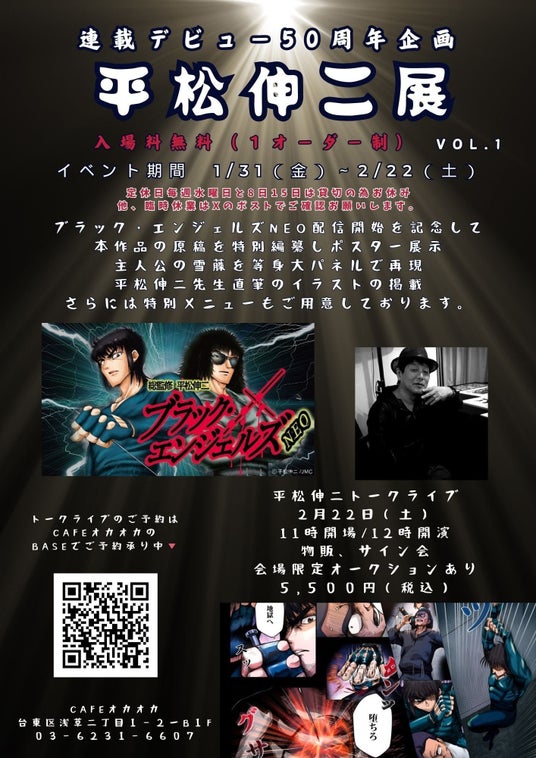 今年連載デビュー50年を迎える漫画家・平松伸二先生のトークイベント。漫画家デビュー裏話、名作「ドーベルマン刑事」「ブラック・エンジェルズ」制作秘話など熱い想いを語ります。