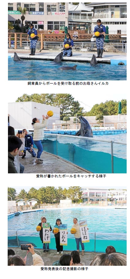『横浜・八景島シーパラダイス』では、2025年1月23日(木)に、バンドウイルカ赤ちゃんの愛称発表会を行いました。昨夏、水族館「ふれあいラグーン」で誕生した3頭のバンドウイルカの赤ちゃんの愛称は「わたげ」「りおん」「ぽぽね」に決定いたしました。