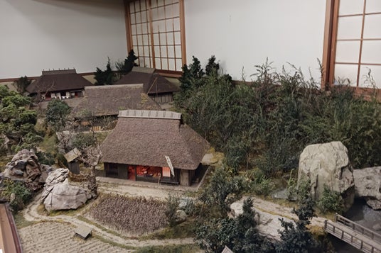 忠実に再現された模型にびっくり!哀愁のふるさと館に足を踏み入れると広がる懐かしい風景。ズラリと並ぶのは、秩父をはじめ、全国に実存した民家のミニチュア模型です。建物だけでなく、庭、建具、調度品からクモの巣まで、長い年月をかけて精巧に再現されています。