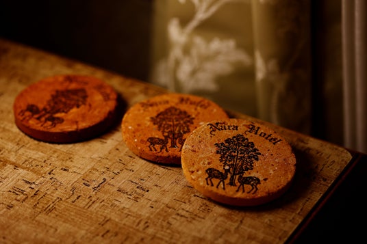 煉瓦コースターについてホテル創業115周年事業の一環として、奈良ホテル本館耐震補強工事中(2017年~2020年)に建物内部から発見された1909年創業当時の赤煉瓦を煉瓦の町で有名な北海道江別市の米澤煉瓦株式会社様のご協力のもと、コースターに加工いたしました。