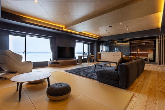 「あかん遊久の里 鶴雅」ウイングス館において、湖側和室3室を1室に改装し、アイヌ文化を彷彿とさせる木のぬくもりとモダンデザインが融合した、広さ108平米の「レイクガーデンビュースイート」を販売開始しました。阿寒湖の壮大な自然を眺めながらプライベートサウナを楽しめる設備を完備。セルフロウリュウと備え付けの水風呂で、客室にいながら「ととのう」スパ体験をお楽しみいただけます。