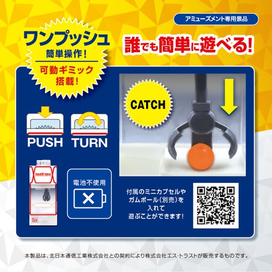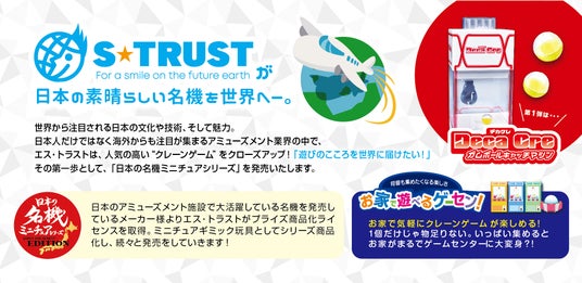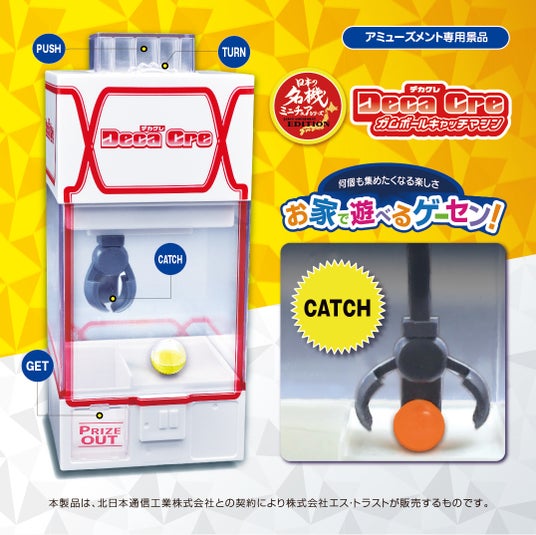 株式会社エス・トラスト(本社:大阪市西区、代表取締役:井田 金吾、以下 エス・トラスト)は、ジェミニシリーズやデカクレシリーズなどのアーケードゲーム機の機器の開発・製造・販売を手がけている北日本通信工業株式会社より「 Deca Cre(デカクレ)」のライセンスを取得し、アミューズメント専用景品(プライズ)のミニチュアギミック玩具として「デカクレガムボールキャッチマシン」を2025年1月5週より全国のゲームセンター・オンラインクレーンゲームへ順次投入いたします。