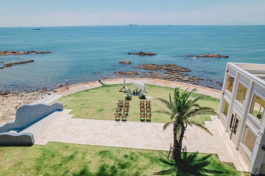 目の前には一面に広がる伊勢湾と、自然豊かな山々に囲まれた愛知県知多半島の海沿いに位置する『NOMA RESORT WEDDING』。