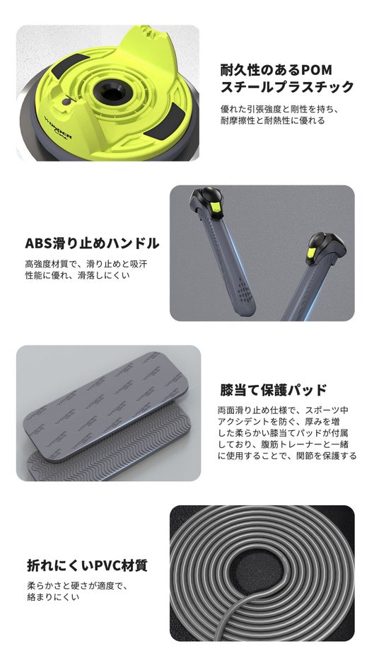 ・多機能一体型設計、腕立て伏せ、腹筋ローラー、縄跳び、腰回り運動を一括収録する