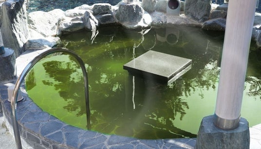 🌿 西尾抹茶風呂~露天風呂~庭園露天風呂が西尾抹茶の香りに包まれる癒しの空間に。 立ちのぼる抹茶の湯気が心も体もほぐします。