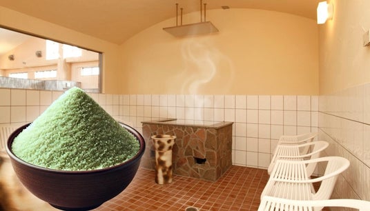 抹茶サウナ~抹茶塩も設置~サウナ室が香り高い抹茶の空間でグレードアップ!特製の抹茶塩を使用することで、肌はすべすべ、心もリフレッシュ。この冬、新感覚の贅沢なサウナ体験をぜひお楽しみください。