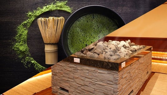 抹茶ロウリュ岩盤房(2F)のロウリュルームで、抹茶の蒸気が心身を包み込みます。当店自慢の熱波師が丁寧に仰ぐことで、抹茶の香りが広がり、リラックス効果をさらに高めます。極上の癒しのひとときをぜひご体感ください。