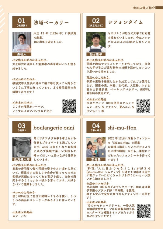 この冊子では、各店舗のパン職人たちがどんな想いでパンを作っているのか、自己紹介やパンへのこだわり、パン作りを始めたきっかけなど、その情熱とストーリーをお届けします。職人たちの想いに触れることで、普段のパン選びがもっと特別なものになるはずです。
