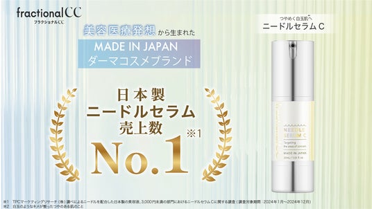ビタミンCとグルタチオン※2を配合したニードル美容液「フラクショナルCC ニードルセラムC」が、2024年日本製マイクロニードル美容液市場(3,000円未満の部門)で売上数第1位を獲得※1しました。