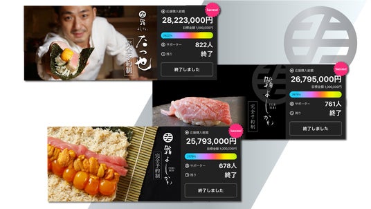 姉妹店である、「鮨よしかわ 恵比寿」「鮨よしかわ 麻布十番」「鮨よしかわ たつ也」のMakuake公開時につきましては、大変多くのご支援をいただき、合計7,000万円を達成いたしました!