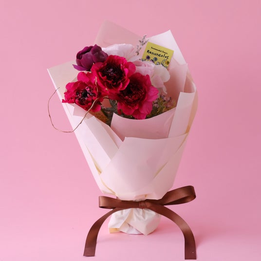 ショップおすすめのラナンキュラスをシンプルなブーケに仕上げました。コンパクトなサイズでちょっとしたギフトやご自宅用にもおすすめです。