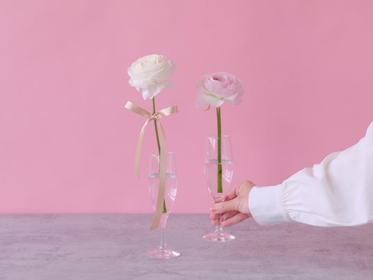 バレンタインのディナーにもおすすめ。シャンパングラスにいけてリボンを結んでドレスアップ!