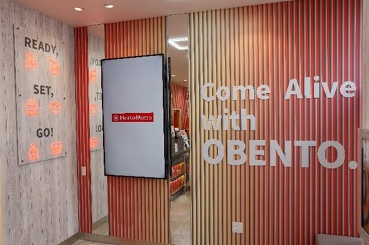 新デザイン店舗は、『ニッポンのお弁当を、愉しく。』をテーマに、明るい外観にワクワクし、お弁当を待っている間も店内空間をお楽しみいただき、そして手作りであたたかいお弁当を食べて、「ほっ」と心まであたたまっていただきたい、という想いを込めました。
