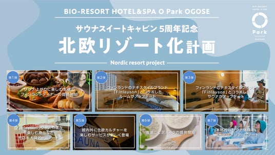 株式会社温泉道場(埼玉県比企郡ときがわ町、代表取締役 山崎寿樹)が運営する複合型リゾート施設「BIO-RESORT HOTEL&SPA O Park OGOSE」(埼玉県入間郡越生町、以下オーパークおごせ)は、2025年3月に5周年を迎える「サウナスイートキャビン」を中心に、サウナや食など7つのサービスをアップデートする「北欧リゾート化計画」を2025年3月より開始します。