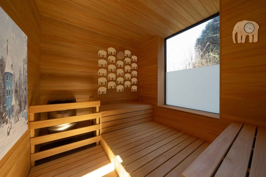 Finlayson(フィンレイソン)のパターンの中でも国内で高い人気を誇るエレファンティのデザインを形どった木材で、サウナ室壁面を装飾。コラボレートルームならではのサウナ室として、より魅力的な空間をご用意します。内部にはテーブル等も新設し、サウナ室内でのコミュニケーションもより活発に楽しめます。
