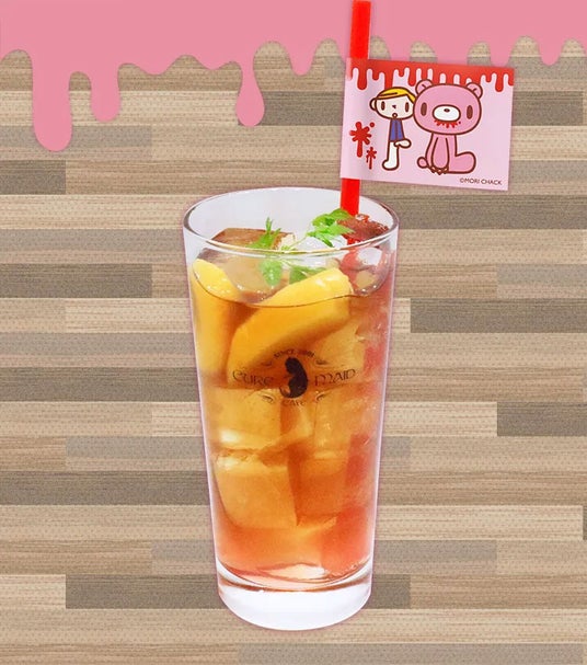 グル~ミ~&ピティーくんほんのりピンクのピーチシロップ入りのアイスティー。