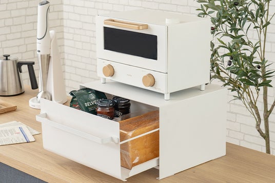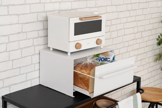 物で溢れ煩雑な印象になり、一気に生活感が出てしまいがちなキッチン。シンプルで清潔感のあるデザインの「ブレッドケース」に収納すれば、すっきり整頓&ひとまとめできて利便性も向上。