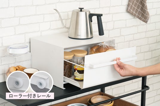 キッチン収納にお悩みの方はマストバイ!ストック食材や調理器具、調味料などをひとまとめに収納して生活感をカバーできる「ブレッドケース」をmottoleより新発売。