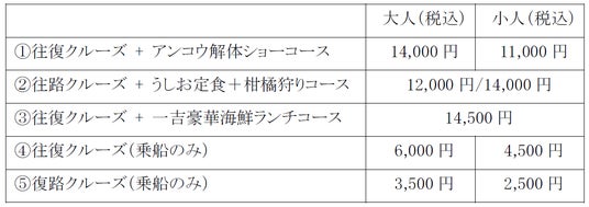 ※中学生以上は大人、小学生は小人料金になります。未就学児は全コース無料