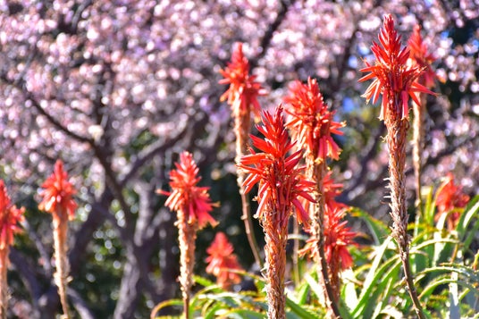 各所で赤いトンガリ帽子のようなキダチアロエの花が咲く