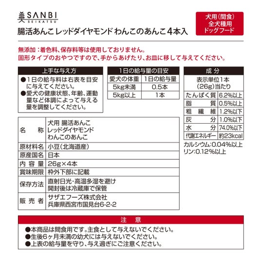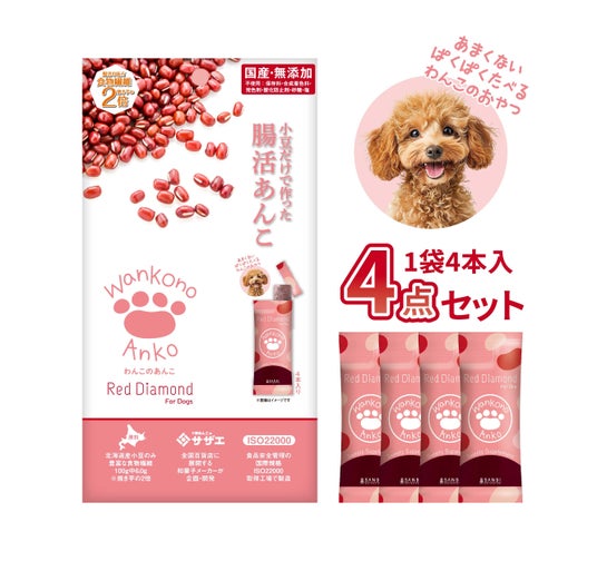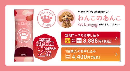 オンラインショップ3美生活(運営会社:株式会社サザエ食品)より腸活あんこレッドダイヤモンドのわんちゃん用「わんこのあんこ」が2025年1月27日(月)から販売を開始いたします。