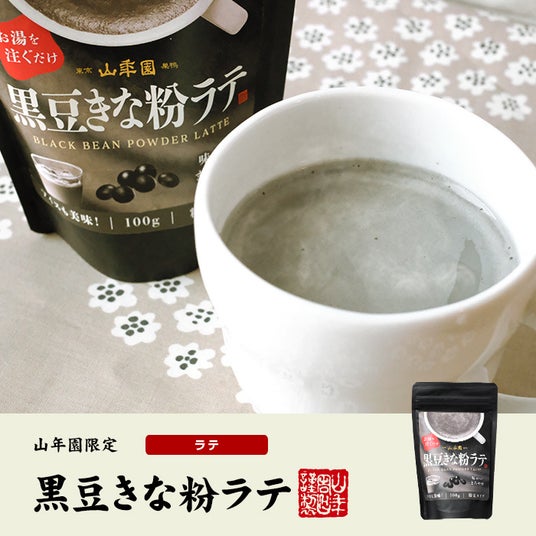 巣鴨のお茶屋さん山年園より、巣鴨の実店舗で大人気の黒豆きな粉ラテの販売を開始いたしました。お湯を注ぐだけで簡単に作れる山年園オリジナルの黒豆きな粉ラテです。