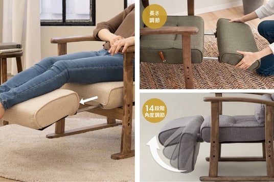 オットマン一体型で、リクライニングや高さ調節が自由自在。健康家具ブランドEMOORがオットマン付き高機能高座椅子「かなた」ポケットコイル座面タイプを販売開始!
