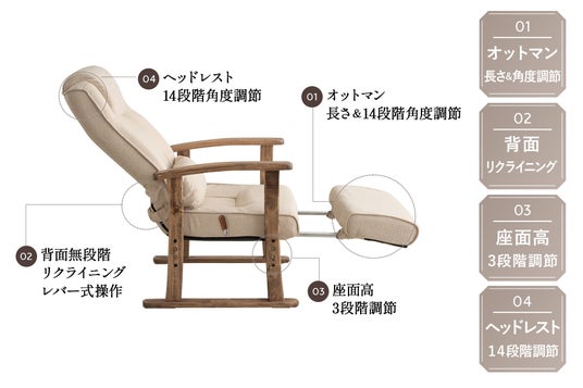 オットマン付き高機能高座椅子-ポケットコイル座面タイプ-