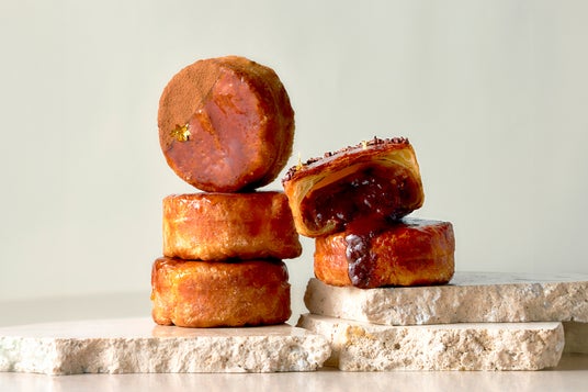 2種類のチョコクリームを合わせたガナッシュを入れ、店頭で焼き上げるクイニーアマン。トロッと溢れ出すチョコレートと、生地のサクサク感を堪能できる、焼き立ての温かいうちにお召し上がりいただくのがおすすめです。