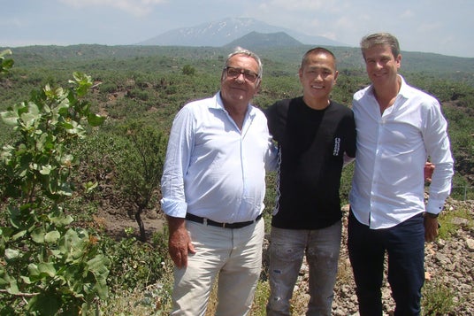 イタリアのピスタチオ農場での一枚(中央:たねやグループCEO 山本)