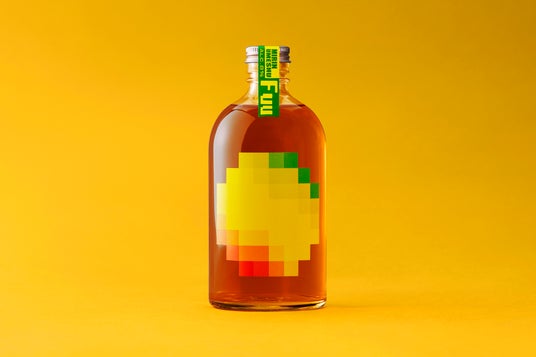 ラベルは「ニューオールド」「ノスタルジック」といったキーワードを連想させるピクセルを採用。中央の黄色や赤の色で完熟梅を表現しています。