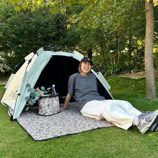 「SNOOPY(PEANUTS 75years)キルティングシート」は、家族や友人とのピクニックにぴったりな140×150cmのゆったり使えるサイズ感のキルティングシートです。表面はさらっとしたポリエステル生地で、砂や草が付いても手で払えてお手入れ簡単です。裏面は防水仕様のアルミ蒸着生地を採用しており、地面からの冷気や熱の伝わりを抑えてくれるうえ、湿った地面でも快適です。550gと軽量かつ、コンパクトに収納ができるので持ち運びが便利です。また、持ち手付きフラップが付いており、折りたたんだ後そのまま持ち運ぶことができます。別売りの「ソーラーQ-TOPフルシェード」にぴったりなサイズで、フロアシートとしても活躍します。