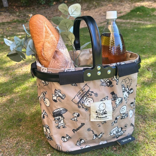 「SNOOPY(PEANUTS 75years)ミニセミルナバスケット」は、ピクニックやキャンプ、運動会などマルチなシーンで活躍する、容量18Lで使い勝手の良い折りたたみ式バスケットです。自立式なので、物の出し入れが快適で、本体生地は着脱式のため、汚れても丸洗いができ清潔にお使いいただけます。遊び道具や食材入れなど、アイデア次第で使い勝手がひろがります。