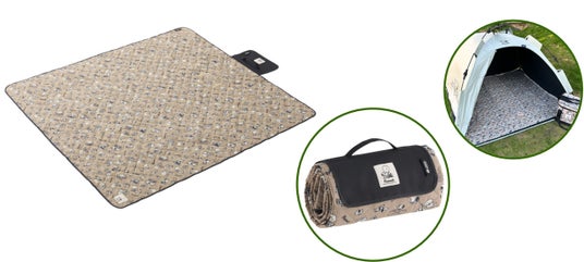 家族や友人とのピクニックにぴったりな140×150cmのゆったり使えるサイズ感のキルティングシート。裏面は防水仕様のアルミ蒸着生地を採用しており、地面からの冷気や熱の伝わりを抑えてくれるうえ、湿った地面でも快適。持ち手付きフラップが付いており、折りたたんだ後そのまま持ち運ぶことが可能。別売りの「ソーラーQ-TOPフルシェード」にぴったりなサイズで、フロアシートとしても活躍。