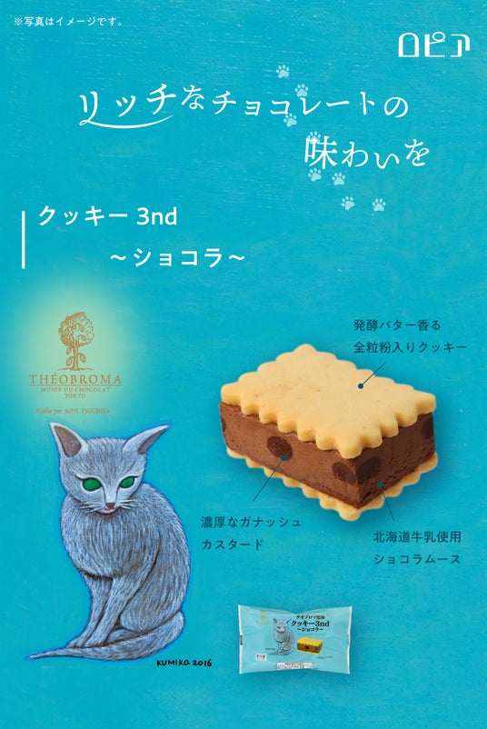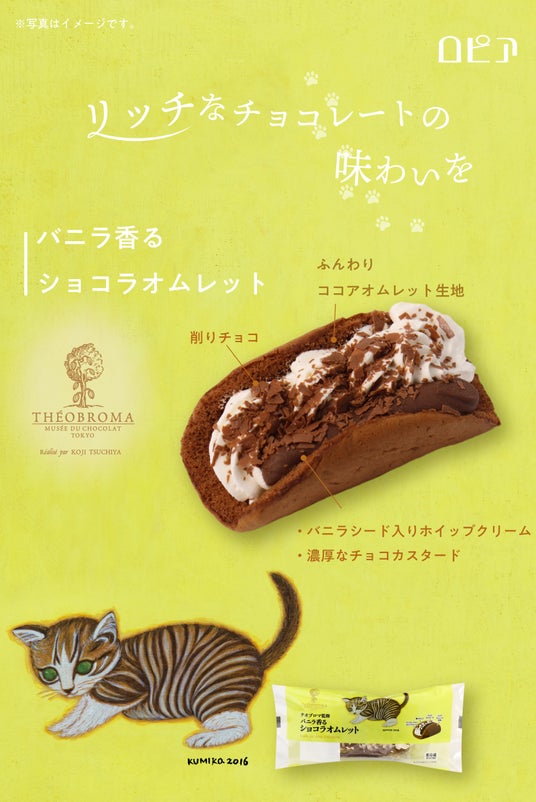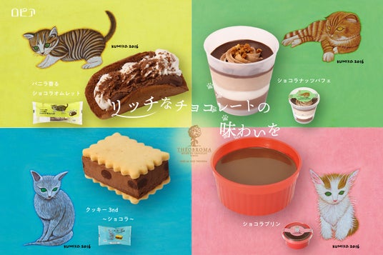 バレンタインデーやねこの日で盛り上がる2月。そんな季節にぴったりの商品をご用意しました。本商品は、「ミュゼ ドゥ ショコラ テオブロマ」(以下、テオブロマ)のオーナーシェフであり、世界に名を馳せるショコラティエの土屋公二氏が監修。土屋氏厳選のチョコレートを各商品に使用しました。パッケージには、テオブロマのパッケージイラストを手掛ける画家・樋上公実子氏が描くかわいらしいネコのイラストを使用。お近くのスーパーマーケットやドラッグストアで購入することができます。リッチなチョコレートの味わいを、かわいらしいネコ達とお楽しみください。