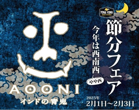 2025/2/1(土)より、株式会社ワンダーテーブル[本社:東京都新宿区西新宿/代表取締役社長 河野 博明]は、 よなよなエール公式ビアレストラン『よなよなビアワークス』にて、期間限定で「節分フェア」を開催いたします。3種の海老を贅沢に使った恵方巻きと、旨辛バッファローウイングとインドの青鬼"無濾過"のペアリングをお楽しみいただけます。