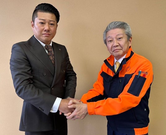右 石川県珠洲市長 泉谷 満寿裕氏 左 フジパン株式会社 西春工場長 山下 洋文